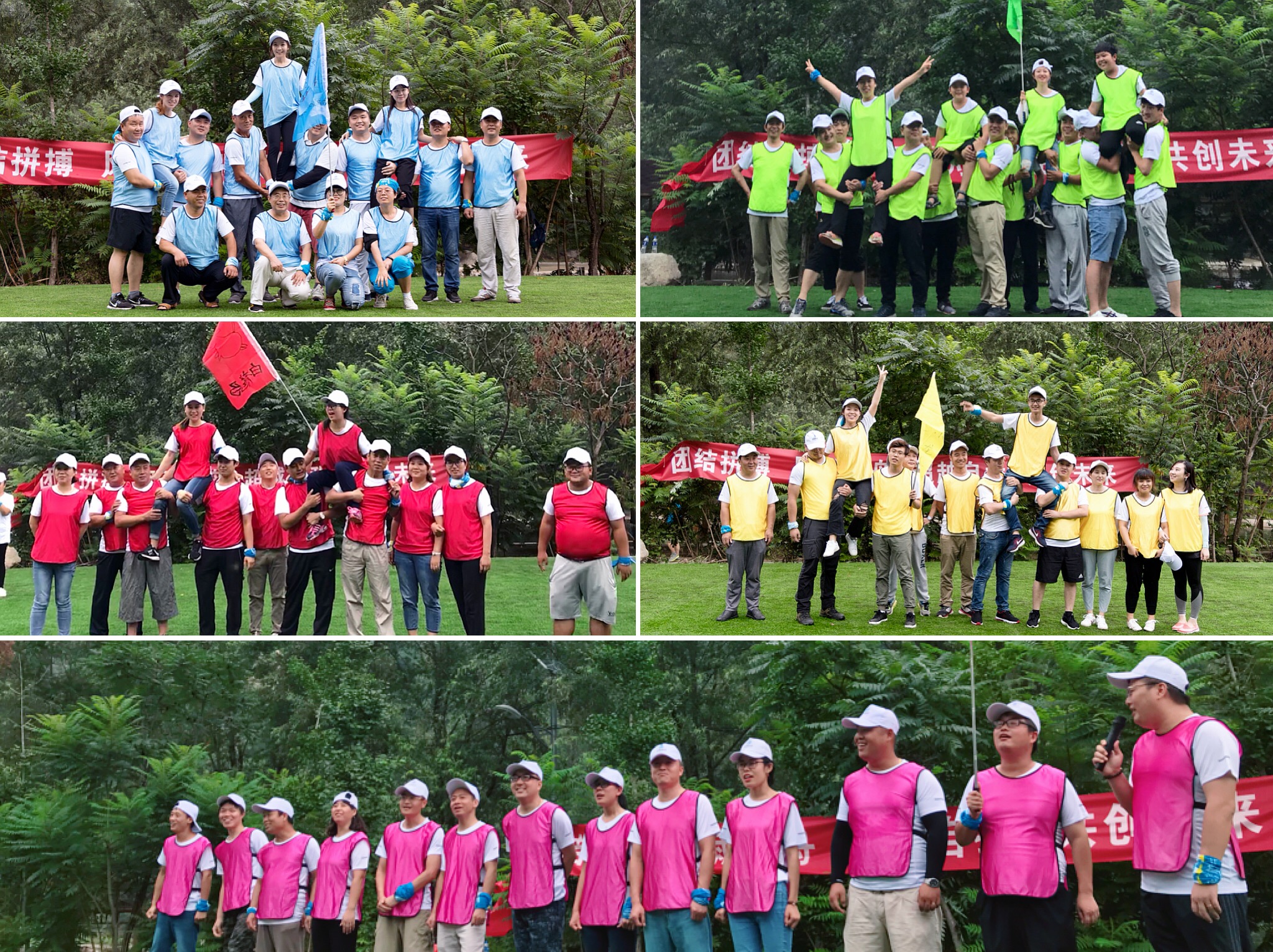 分隊分別為紅隊白龍馬隊、藍隊萌虎隊、黃隊小龍人隊、粉隊豬之隊、綠隊牛魔王隊,從隊名就可以看出伙伴們童心未泯,想象力豐